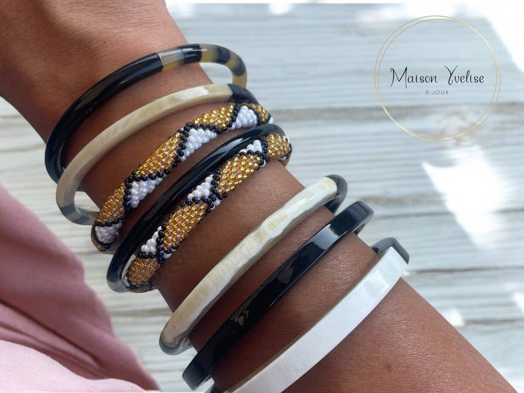 Bracelet Népalais Noir Blanc Or: 6.5 cm (Diamètre interieur)