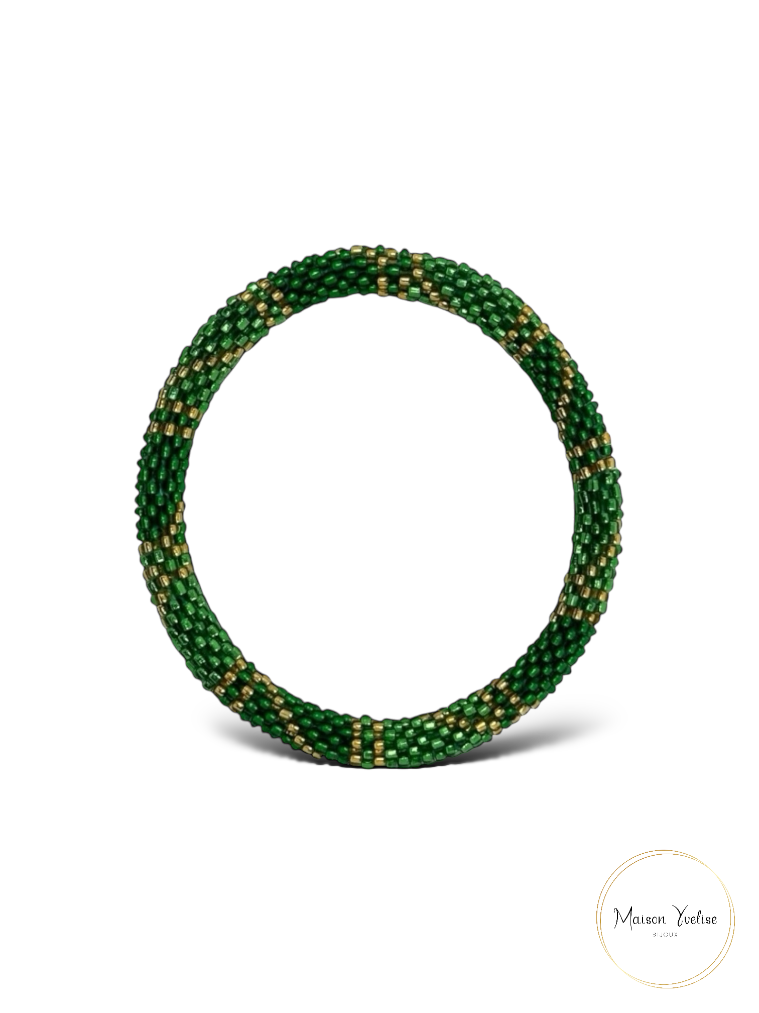 Bracelet Népalais en perles Vert et Or – Artisanat Unique