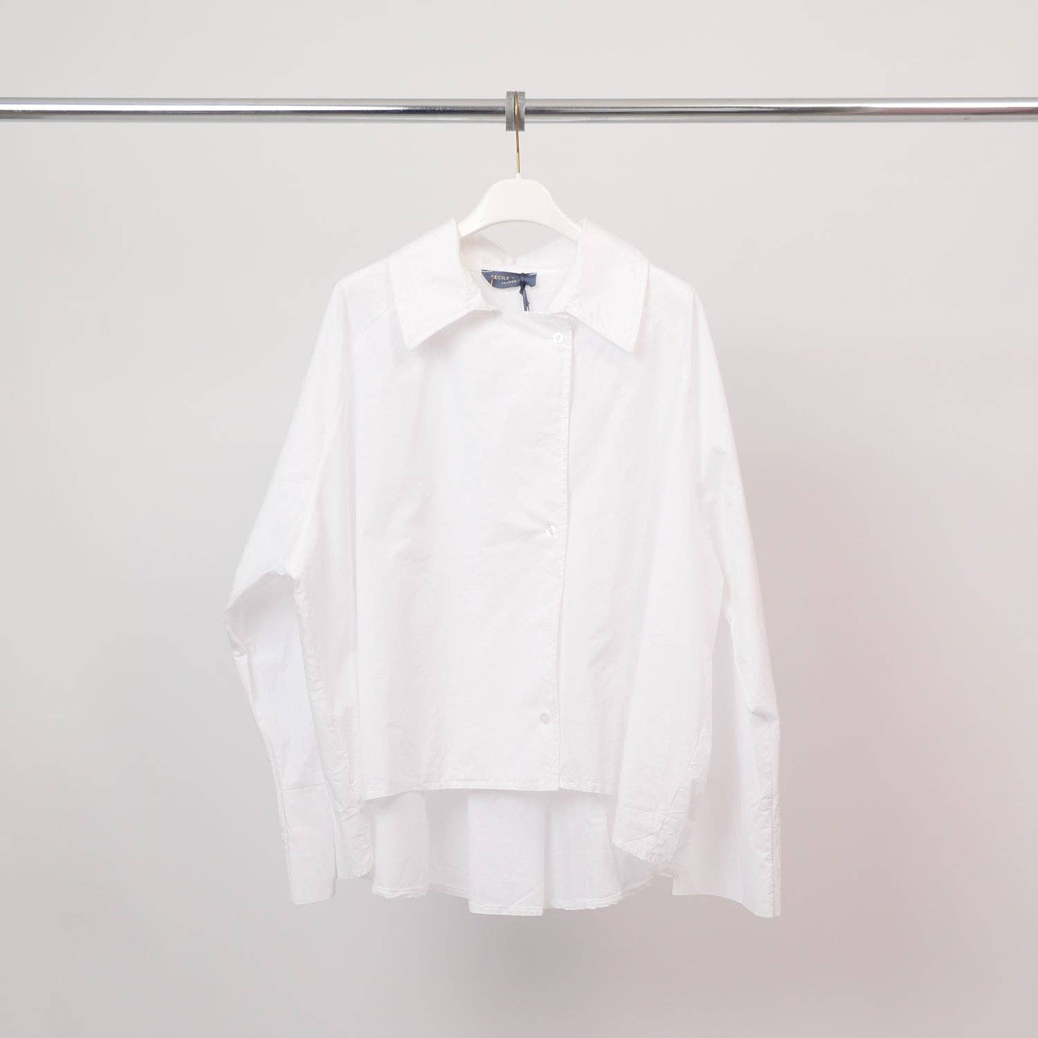 Chemise en coton à boutonnage asymétrique – DB14916: Blanc