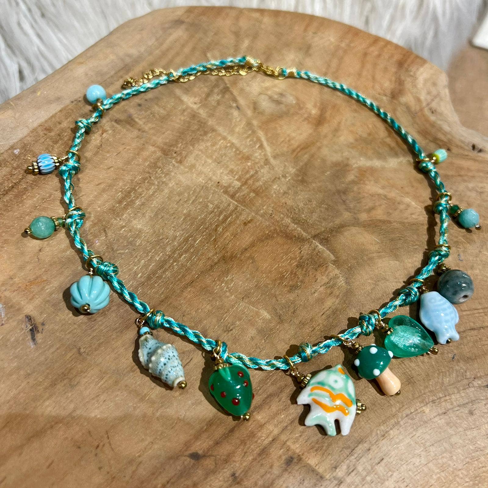 Collier en acier inoxydable,cordon en tissu avec des breloques style bohemien.